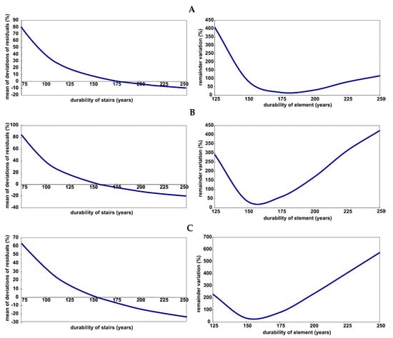 - Regarding the analysis of the residual component, and also the assumed parabolic models with regards to the assumed durability T of the elements of downtown residential buildings: