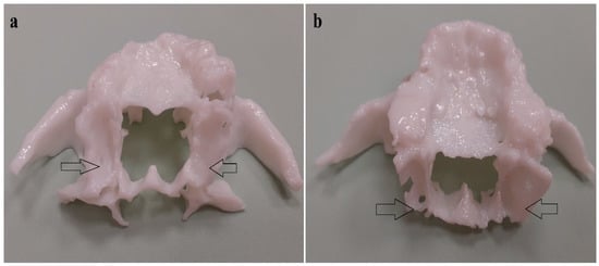3D models of the upper jaw with the visualization of the junction zone. (a) 3D model of the male upper jaw; (b) 3D model of the female upper jaw.