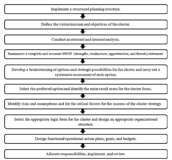 According to Fundeanu and Badele (2014) [], the long-term performance of the industrial cluster depends on the attraction of companies, venture capital, new skills, and other external resources. The same author concluded that certain clusters generate high costs; however, these stand out, mostly, due to sustainable innovation, resource development, and strong commercial relationships that occur inside and outside the cluster area.