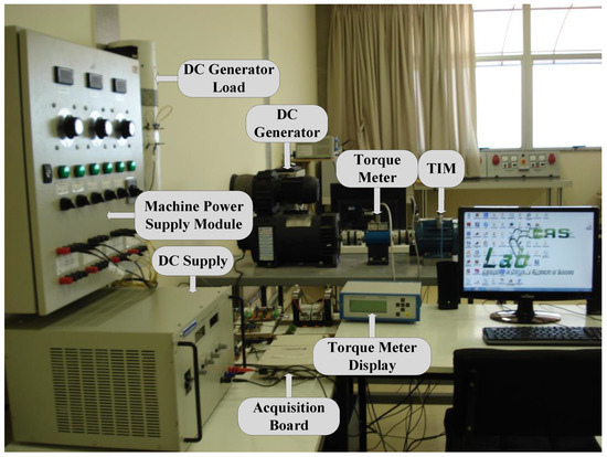 The workbench allows the variation of the supply frequency and a mechanical torque imposition on the shaft because the TIM is connected to a direct current generator. Moreover, there is a torque meter with an integrated speed sensor that can read torque and speed signals. Hall sensors are responsible for collecting and conditioning the stator current signals transferred to the data acquisition board’s analog inputs connected to a microcomputer.
