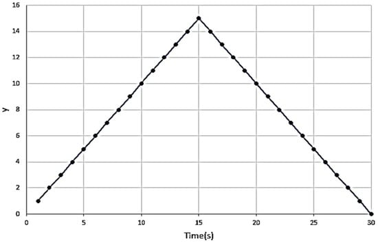 As an example, Figure 8 shows the y coordinates of a hand joint point of 30 consecutive pictures while a person makes a gesture of raising and lowering the hand. The first 15 pictures are gradually raising the hand, and the hand is lowered from the 16th picture. We use these data to evaluate the error between the compensated values and the original values.