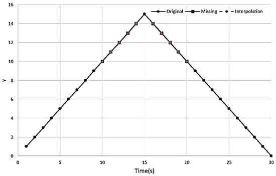 Linear interpolation compensates for missing points (points 10–14, points 16–20 are missing).