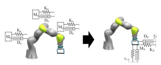 Schematic diagram of the transformation from the joint space impedance control model to the Cartesian space impedance model.