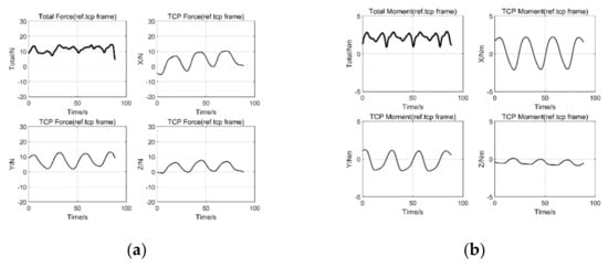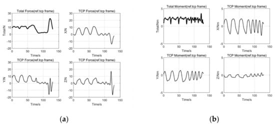 The interaction force and moment between the handle and the subject’s hand. (a) is the interaction force between the handle and subject’s hand; (b) is the moment between the handle and subject’s hand.