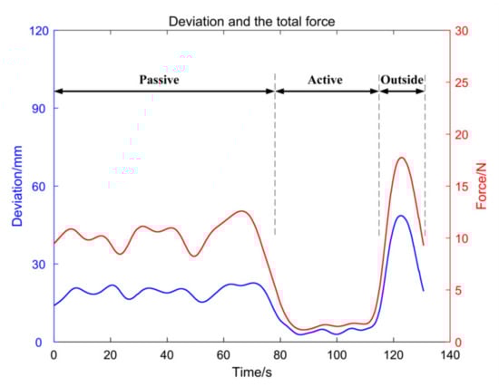 The total interaction force and the deviation between the handle and the subject’s hand.
