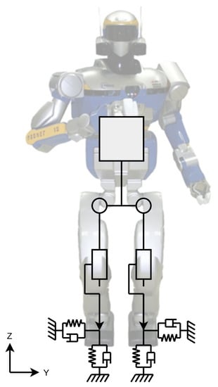 - Azad, M.; Mistry, M.N. Balance control strategy for legged robots with compliant contacts. In Proceedings of the IEEE International Conference on Robotics and Automation, Seattle, WA, USA, 26–30 May 2015; pp. 4391–4396. [Google Scholar]