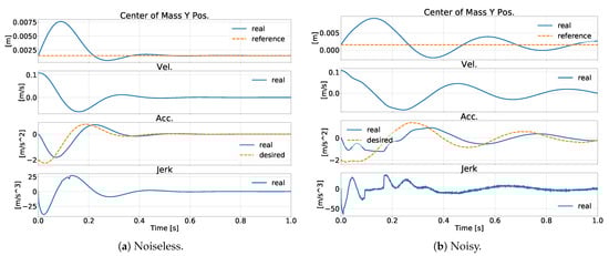 Our main interest lies in the underdamped case—which is more challenging in our experience—which means that ( correspond to the critically damped case). In these cases, relying on (3) to control may not be convenient because very large values of (hence motor commands) may be required.