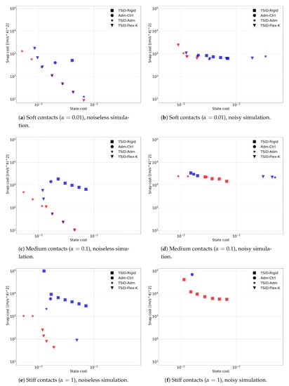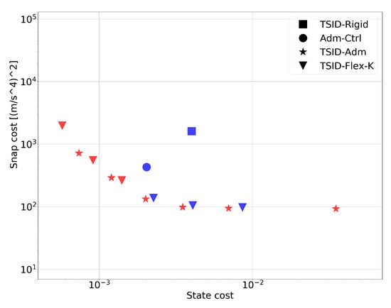 For TSID-Flex-K and TSID-Adm we have used values of evenly spaced in logarithmic scale between and . For TSID-Rigid instead we have used values between and .