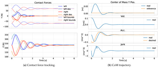 Let us assume that the desired CoM trajectory is a sinusoid with frequency Hz and amplitude .
