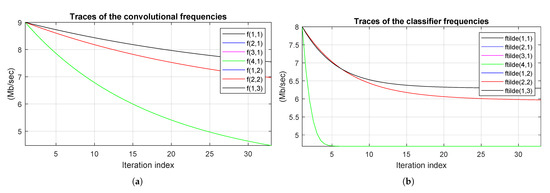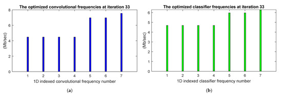 | Vector of the maximum processing frequencies of the convolutional processors | (Mbit/s) | ||