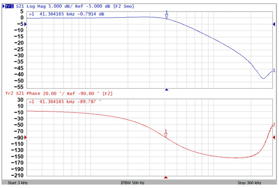 Experimental Gain-frequency and phase-frequency voltage responses of the NBS filter.