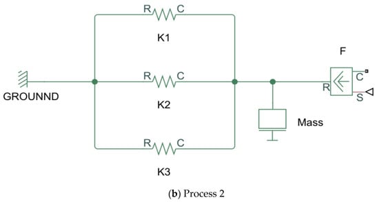 It can be seen that during process 1, in order to move to the left, the pin (5) in the socket that is rigidly connected to the shell of the entire socket pushes the valve (1) of the plug to overcome the elastic resistance of the spring K2. At the same time, due to the reaction force given by the glove (2) in the plug, the glove (3) in the socket moves to the right against the elastic force of the spring K1. The theoretical mechanical model of this process is shown in Figure 3a.
