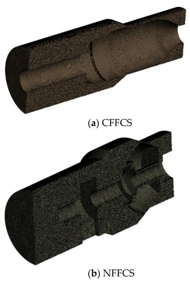 Meshing of the two models, (a) CFFCS and (b) NFFCS.