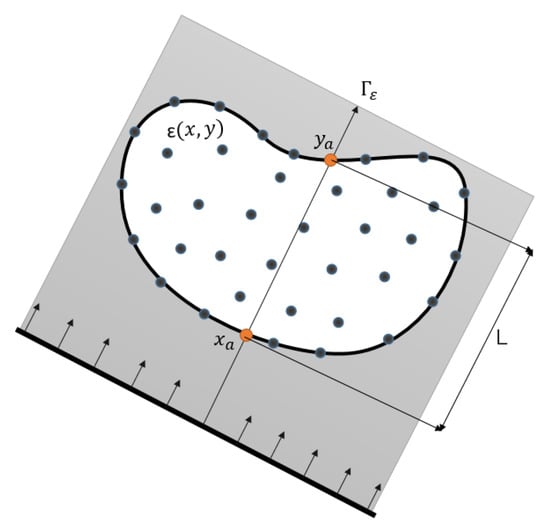 Let us consider a two-dimension strain reconstruction problem in domain whose strong form is given by Equation (1) and generalized weak form is obtained as