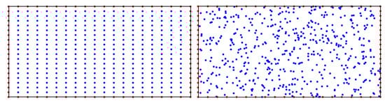 Uniform node set containing versus non-uniform nodal domain containing randomly spaced nodes.