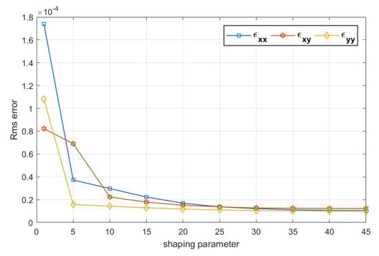 The numerical rms error with different shaping parameter values are calculated using the root-mean-square error and shown in Figure 8