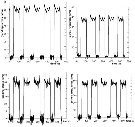 The measured typical stresses in the critical cross-section on the outer surface of the guide bar are displayed in Figure 6.