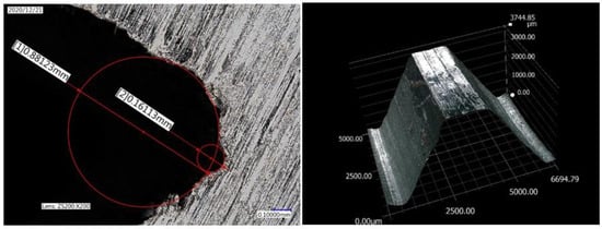 By measuring the exact geometry in the root of the thread using a digital microscope (Figure 9) and using the elliptical groove concept according to Nishida [15,16], it is possible to analytically determine the value of the stress concentration factor, Kσ = 5.95. This value is in good agreement with the results of the FEM model, which we will use in the next analysis.