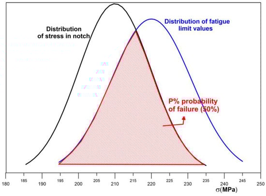 In terms of early risk of fatigue crack, the relationship of those two sets is characterized by the probability of failure described as a random value F with parameters of normal distribution: .