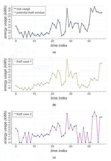 In this paper, we assume that from the perspective of the attacker, any day can be broken down into the two “windows”, i.e., the “theft period” window indicating time periods where theft could result in maximum profit to the attacker and the “non-theft period” specifying the least profit for the attacker. Hence, the synthetic theft cases proposed in this section are revisions of previous theft cases, taking these windows of variable time durations into consideration. The “windows” could be, of course, randomly chosen time slots or carefully planned time slots to maximize the profits of the attackers.
