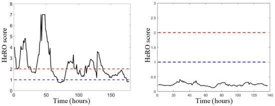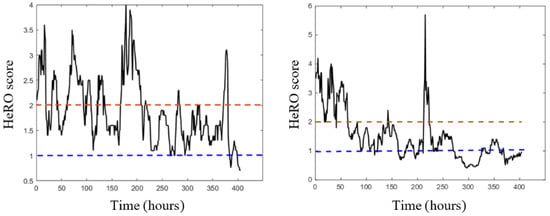 Figure 6 show two examples of the variation over time of the HeRO score for 4 different subjects. Specifically,