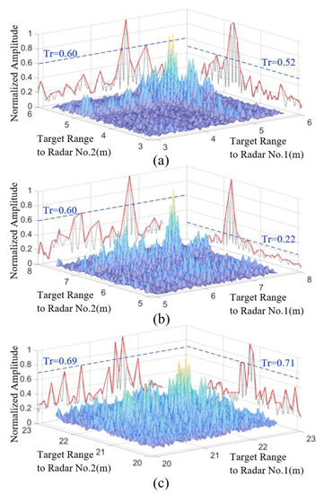 Depending on some threshold detectors, the maximum projection for each range dimension can be used to extract the values of distances from radars No.1 and No.2 based on the VSFs.