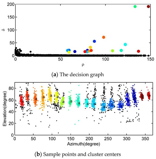 Density-based spatial clustering of applications with noise (DBSCAN) can deal with clusters with an arbitrary shape. One chooses a density threshold, discards the points in regions with densities lower than this threshold as noise, and assigns disconnected regions of high density to different clusters. However, choosing an appropriate threshold can be nontrivial [23]. Rodriguez et al. [24] suggested a new efficient density peaks clustering algorithm, i.e., clustering by fast search and finding density peaks (DPC). More effective than the traditional algorithms, such as K-means and DBSCAN, DPC can determine the centers automatically according to the density of sample points, and can handle data with any distribution. The computational load is also small. DPC is based on two assumptions: the local density of the center is bigger than that of the neighboring sample points; the distance between any two centers of different clusters is far away.