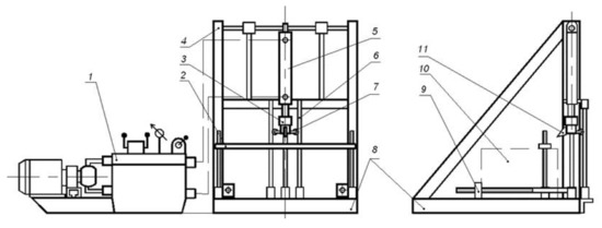 The employees of the Department of Mechanical Engineering of the Saint Petersburg Mining University designed and manufactured a bench (Figure 2) in order to experimentally study the rock-breaking mechanism of a potash mass with a single cutter [16,22].