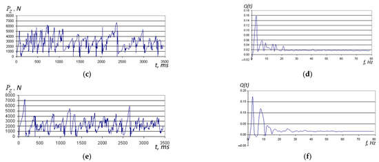 The calculated values of the frequencies are close to the values obtained experimentally (see Figure 5d), which amounted to 3 Hz and 8 Hz, respectively.