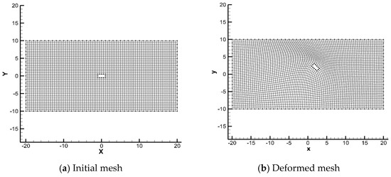 For computational fluid dynamics (CFD) computations and fluid-structure interaction (FSI) computations, a flows simulation with a moving boundary are often encountered at various important problems such as stability analysis of bridges, aircraft optimizations, flutter calculations, and bioengineering simulations [1,2,3,4,5]. The mesh deformation algorithm is required to adapt the CFD computational mesh with the motion of the boundary. With regards to the problems with large deformation of boundary, performance of mesh deformation methods often becomes a limiting factor to CFD simulations accuracy [6]. Meanwhile, the computational mesh needs to be updated repeatedly during an unsteady simulation, bringing large computational cost. Accuracy and computational efficiency of mesh deformation algorithm is crucial for the previously mentioned problem [7,8].