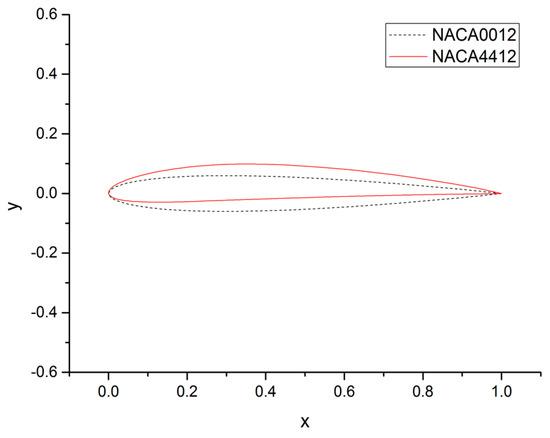 The mesh deformation algorithm performed very well for rigid airfoil with large rotation, as shown in Section 4.2. However, it is not clear how it works when the airfoil is changed. In this test case, an airfoil transform problem with a C-Type structure mesh are investigated. The initial airfoil is NACA0012, which is symmetrical and the target airfoil is NACA4412, which is asymmetric, as shown in Figure 14. Additionally, 100 nodes on the airfoil and 84 nodes on the boundary are selected as the center node. Figure 15 gives the deformed mesh over the calculation domain. Due to the small displacement of the nodes, it is almost impossible to detect the distortion of elements at a certain distance from the airfoil. Deformed mesh near the training edge and the leading edge of the airfoil has been given in Figure 15. As can be seen, the mesh near the airfoil maintains good orthogonality.