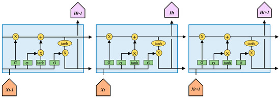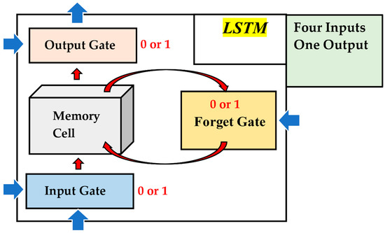 LSTM is the improved version of RNN. The structure of LSTM is shown in Figure 5 [17]. There are three specific features in the LSTM structure, including input gate, output gate, and forget gate (Figure 6). The major tasks of the gates are controlled by the LSTM, namely whether to abandon the history data, whether to let the data of new time sequences enter, and what data to output.
