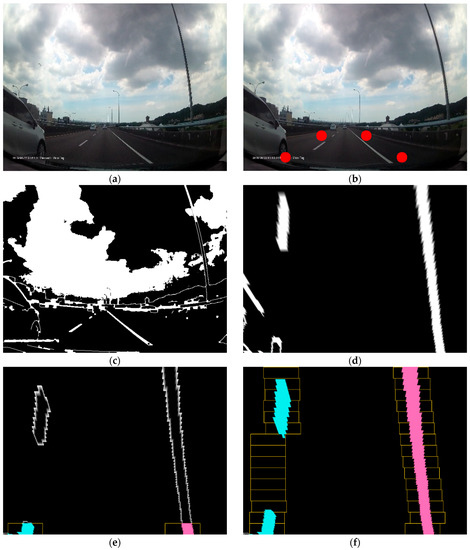 - Qiu, D.; Weng, M.; Yang, H.; Yu, W.; Liu, K. Research on Lane Line Detection Method Based on Improved Hough Transform. In Proceedings of the 2019 Chinese Control And Decision Conference (CCDC), Nanchang, China, 3–5 June 2019; pp. 5686–5690. [Google Scholar] [CrossRef]