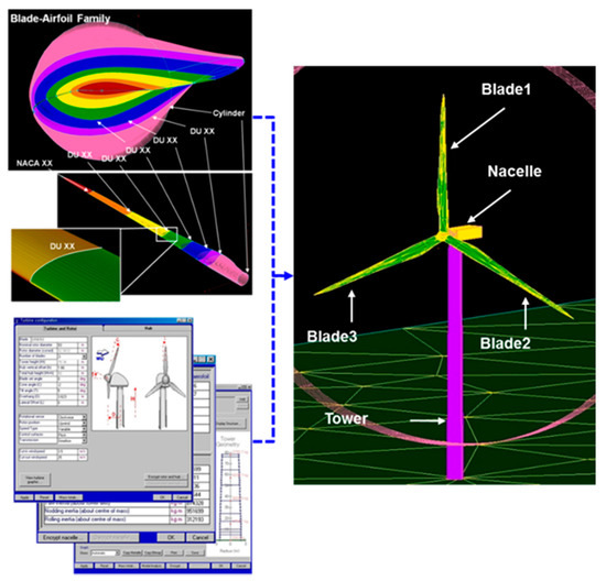 Due to this reason, optimization of the airfoils at the blade root was aimed to maximize higher aerodynamic efficiency while satisfying greater thickness [22]. Design specifications of the rotor blade, nacelle, and tower are listed in Table 1 and Table 2.