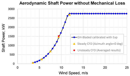 Figure 4 shows the verification of aerodynamic performance obtained from 3D CFD simulation at a 0° azimuth angle of rotor 1 with values obtained by GH Bladed software, which is based on modified BEMT for the certification at variable azimuth angles of a rotor blade. It showed that the 3D CFD analysis results are in good agreement with the BEMT analysis results within 5.6% error of the shaft power.