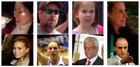 We used LFW deep funneled images dataset [36]. LFW consists of over 13,000 face images of real people from both genders collected from the web. The face images are of varying conditions of image quality, facial expressions, head poses, illuminations, and occlusions. The samples are shown in Figure 2. We used the deep funneled version of the dataset because it is the best version available in terms of achieved accuracy. In this version, the face images were aligned using deep learning [36]. Similar to [20] and [39], we used a subset of the dataset. The original dataset was unbalanced; therefore, we performed under-sampling of the majority class to create a balanced dataset having a size of 6000 images. Further, following [86], we performed preprocessing to resize all the images to 224 × 224 to be processed by the VGG-16 model. The dataset was divided into balanced five folds to perform cross validation.