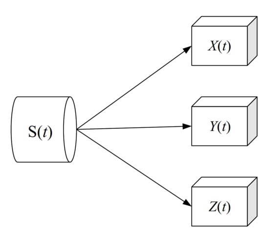 Where S(t) is the measured signal source, X(t), Y(t), Z(t) are the signals measured, respectively by the three sensors. It can be seen from the figure that the propagation speed is different and there is a time deviation due to the different distances between the sensors and the same signal source. In order to eliminate the influence of time deviation, it is necessary to study the spatial correlation between sensors. The space coordinate system was established with the signal source as the origin, and three sensor spatial coordinates were obtained. The relationship between the signal source and the position parameters of the three sensors is shown in Table 1.