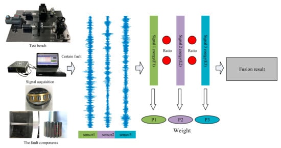Signals x1, x2, …, xi from the same fault source acquired by different sensors, the different weights of each signal can be obtained from the above formula, so the final fusion result X can be obtained as: