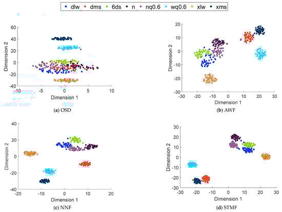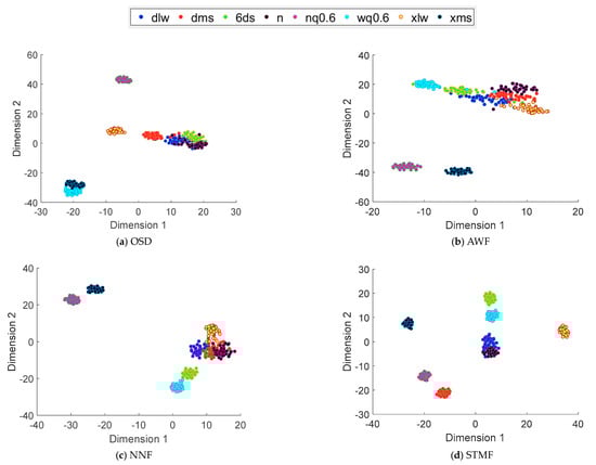 In the effect diagram of STMF diagnosis, although each type of fault looks relatively discrete, all types of faults have been separated. In contrast, the fault diagnosis effect of OSD, AWF and NNF is better, but the aggregation effect of each type of fault needs to be improved.