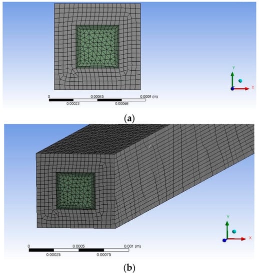 In order to confirm the flow of microfluids in the hydrophobic coated capillary tube, the numerical analysis model was modeled on the square capillary tube. The following Figure 4 is a modeling of a square capillary tube, which is modeled with an inner diameter of 400 μm and an outer diameter of 800 μm and a length of 3 cm.