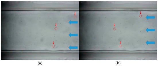 Experimental results of flow characteristics of copper contaminants–capillary tube bottom: (a) particle position before moving; (b) particle position after moving.