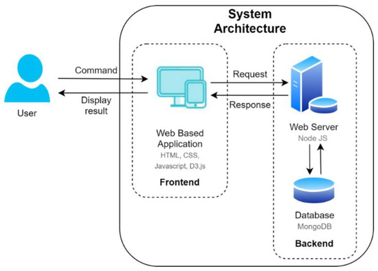 The system architecture is shown in Figure 3. It is based on basic web application architecture, where it consists of the front end and back end. The front-end part handles a user’s input command and displays the result that was given by our web server.