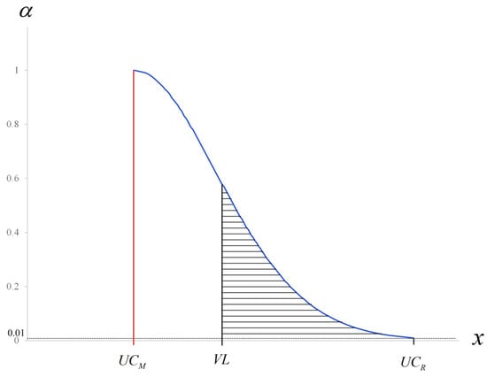 If we want to determine whether the supplier’s improvement potential is above the average level, we can evaluate it through the fuzzy test of the process improvement capability index. If the value of the process improvement capability index is at least VL, which indicates that its potential reaches the required level, then the null hypothesis is : ≥ VL, versus the alternative hypothesis, H1: VL. If the upper confidence limit with a significance level at 0.05 is applied, we can obtain the following statistical test rules: