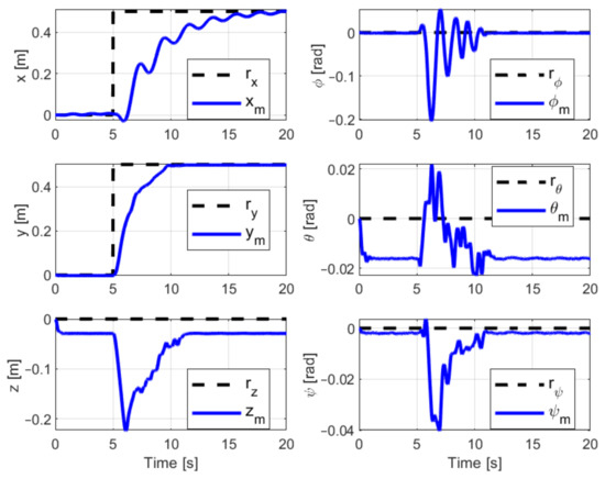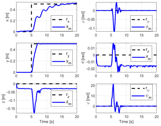 considering and virtual forces and and virtual moments generated over the x, y and z-axis of the body-fixed reference frame. The time-varying state-space variables of the LPV system are iteratively computed with respect to the nonlinear dynamics model of Equation (1), such that: