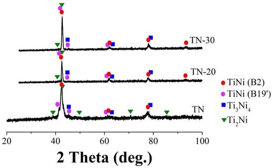 - Neiman, A.A.; Semin, V.O.; Meisner, L.L.; Ostapenko, M.G. Structural decomposition and phase changes in TiNi surface layer modified by low-energy high-current pulsed electron beam. J. Alloys Compd. 2019, 803, 721–729. [Google Scholar] [CrossRef]