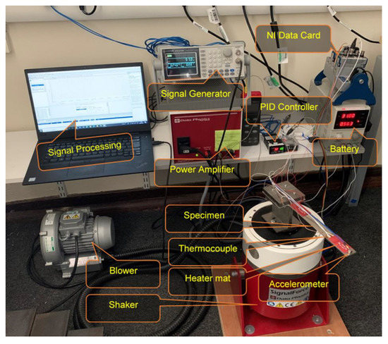 - Santos Silva, A.C.; Sebastian, C.M.; Lambros, J.; Patterson, E.A. High temperature modal analysis of a non-uniformly heated rectangular plate: Experiments and simulations. J. Sound Vib. 2019, 443, 397–410. [Google Scholar] [CrossRef]