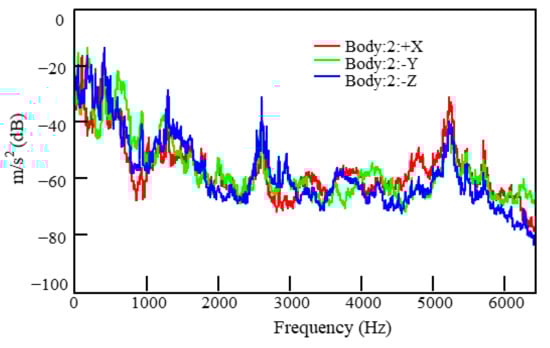 Excitation spectra on the front mount body (in three directions from Point 2).