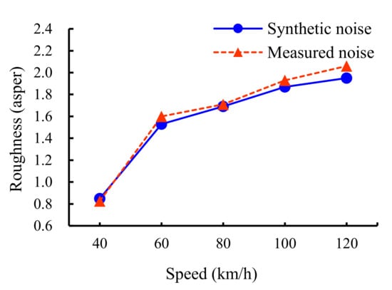 Comparison of synthetic and measured noise roughness at different operating speeds of the PEV.