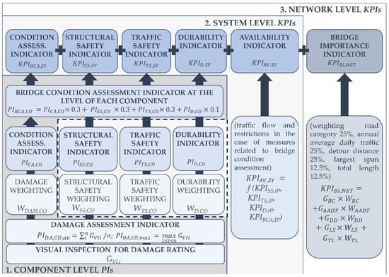 Furthermore, after the disclosure of indicators at the level of each component (1 < co < n), the Key Performance Indicators (KPI) of the overall bridge as a system are proposed by Mandić et al. [] as maximum values among the component indicators.