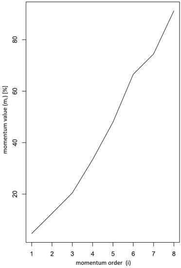 Figure 2 shows the dependence of the momentum value () on the momentum order (i) of an average volleyball team. For example, the value is a number that represents how much (in percentage) the probability of winning the third point will increase, in relation to the average probability of winning points on the team’s own serve, if the team previously won two points in a row. Figure 2 confirms the hypothesis that a short-term boost effect exists and that it is cumulative. Winning more points in a row will result in a larger probability of winning the next point.